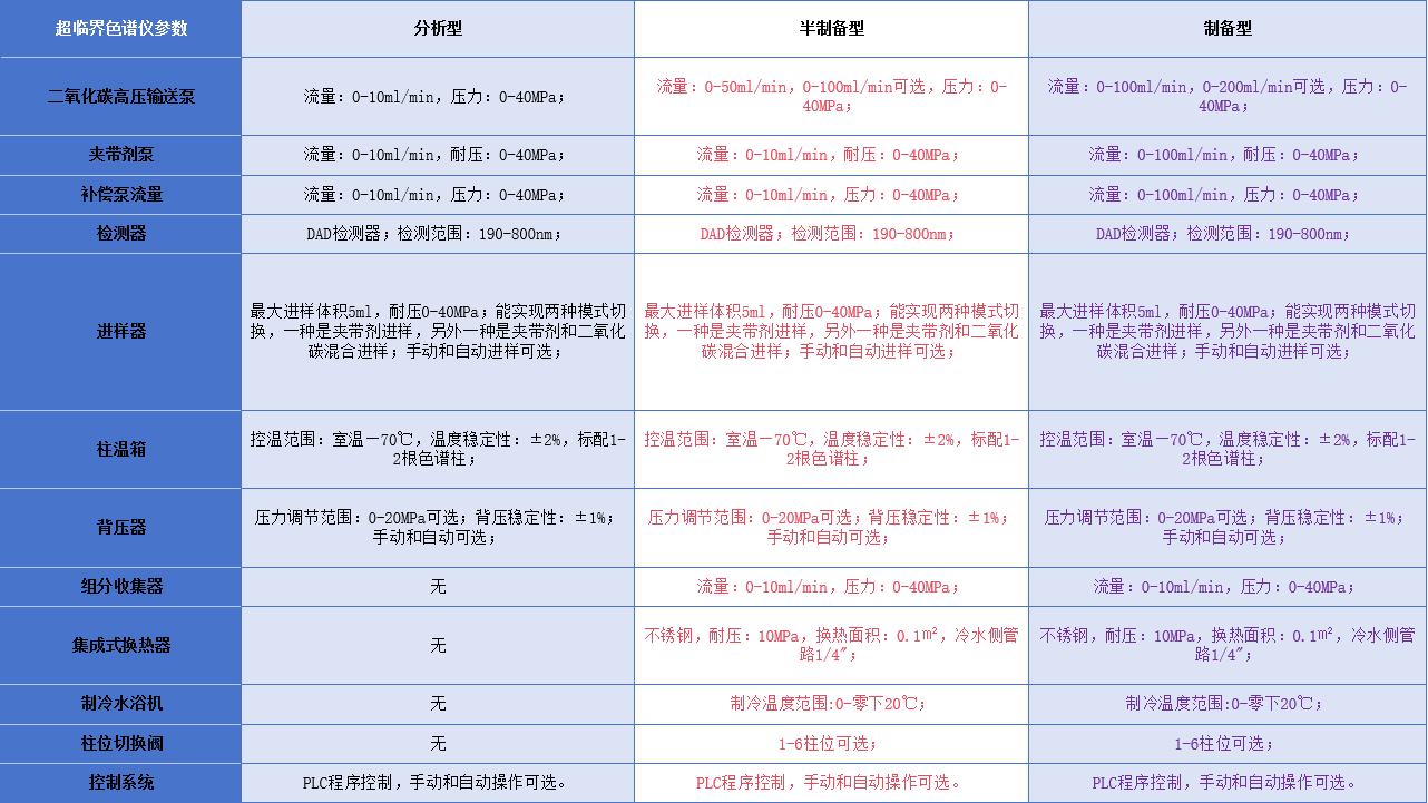 {"樣品池":"316L不銹鋼材質(zhì),帶藍(lán)寶石視窗和照明","氣路控制":"耐高壓閥門和管路,精確的流量控制,排氣流速≤10ml/min。","溫度控制":"電加熱和內(nèi)置壓縮機(jī)制冷,自動(dòng)溫控,精度:±1℃。","過濾系統(tǒng)":"內(nèi)置和外置0.5um精度高壓過濾器。","耐高壓管路":"316L不銹鋼材質(zhì),精確設(shè)計(jì),耐腐蝕和高壓。","臺(tái)式CO2高壓泵":"316L不銹鋼泵頭,藍(lán)寶石活塞,流速:0-100ml/min,壓力0 40Mpa ,內(nèi)置預(yù)冷罐為壓縮機(jī)制冷,無需冷水機(jī)。恒流恒壓模 式可選,觸摸屏操作,壓力